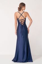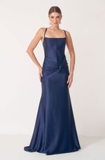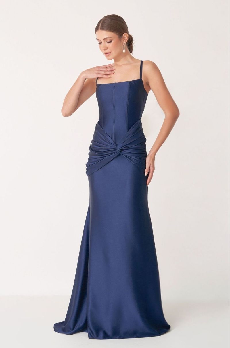 Vestido sereia com costas abertas que une sensualidade estruturada e elegância. Confeccionado em cetim, tecido que oferece brilho sutil e caimento impecável, o modelo traz um decote reto com alças finas que traz delicadeza ao visual. A cintura com barbatanas proporciona sustentação e estrutura, enquanto o detalhe torcido e franzido no quadril valoriza as curvas, criando um efeito sofisticado na silhueta. A saia sereia desenha o corpo com charme e refinamento. Nas costas, o decote profundo com amarração finaliza a peça com um toque ousado e moderno. Fechamento por zíper invisível lateral a partir do quadril.