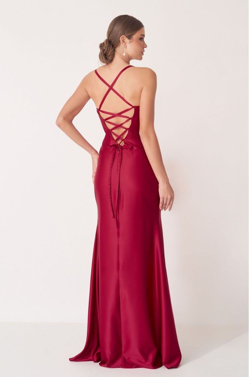 Vestido sereia com costas abertas que une sensualidade estruturada e elegância. Confeccionado em cetim, tecido que oferece brilho sutil e caimento impecável, o modelo traz um decote reto com alças finas que traz delicadeza ao visual. A cintura com barbatanas proporciona sustentação e estrutura, enquanto o detalhe torcido e franzido no quadril valoriza as curvas, criando um efeito sofisticado na silhueta. A saia sereia desenha o corpo com charme e refinamento. Nas costas, o decote profundo com amarração finaliza a peça com um toque ousado e moderno. Fechamento por zíper invisível lateral a partir do quadril.