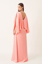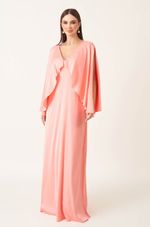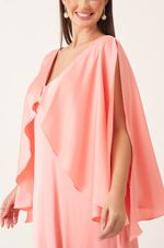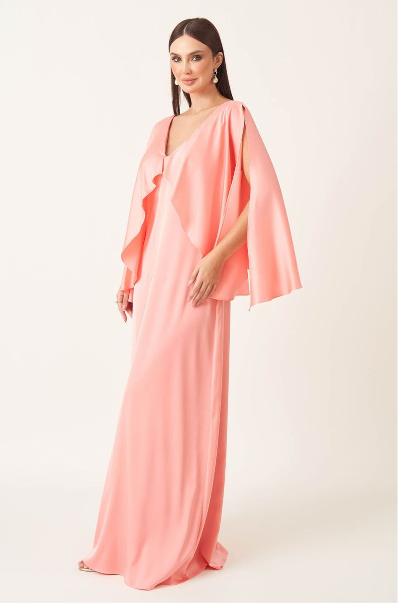 Vestido longo em silk satin que garante fluidez sofisticada. Possui sobreposição no busto em camada fluida estilo manga capa com recorte lateral, trazendo leveza e sofisticação ao visual. O decote V frente e costas garantem sensualidade na medida e a saia reta equilibra o visual. Ideal para casamentos, formaturas e eventos formais ao entardecer.