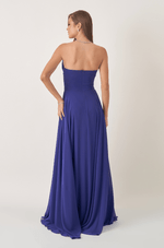 O destaque fica por conta do decote sem alças com design assimétrico: uma faixa cruzada com franzidos que valoriza a parte de cima do corpo e garante um visual atual e marcante. A saia rodada completa o look com muito movimento ¿ ótima para dançar, caminhar com leveza e se sentir incrível.