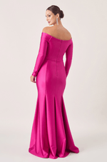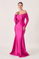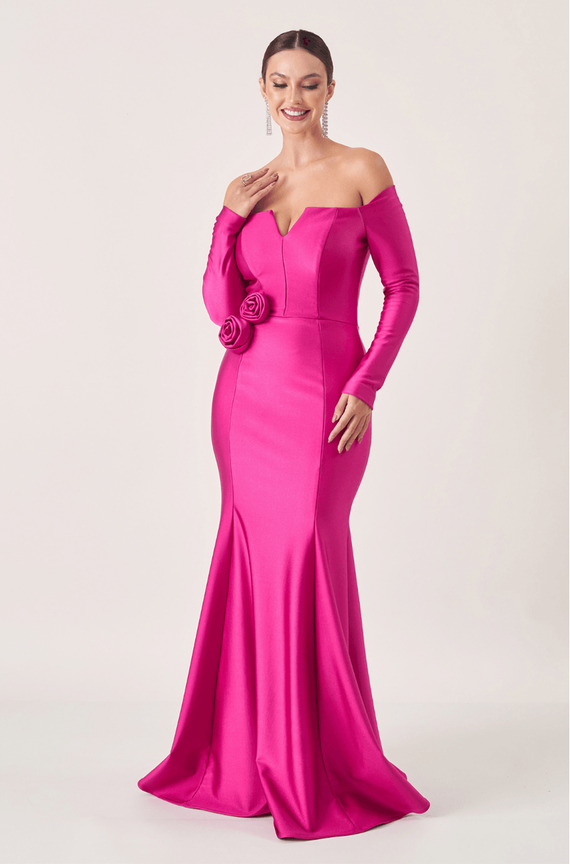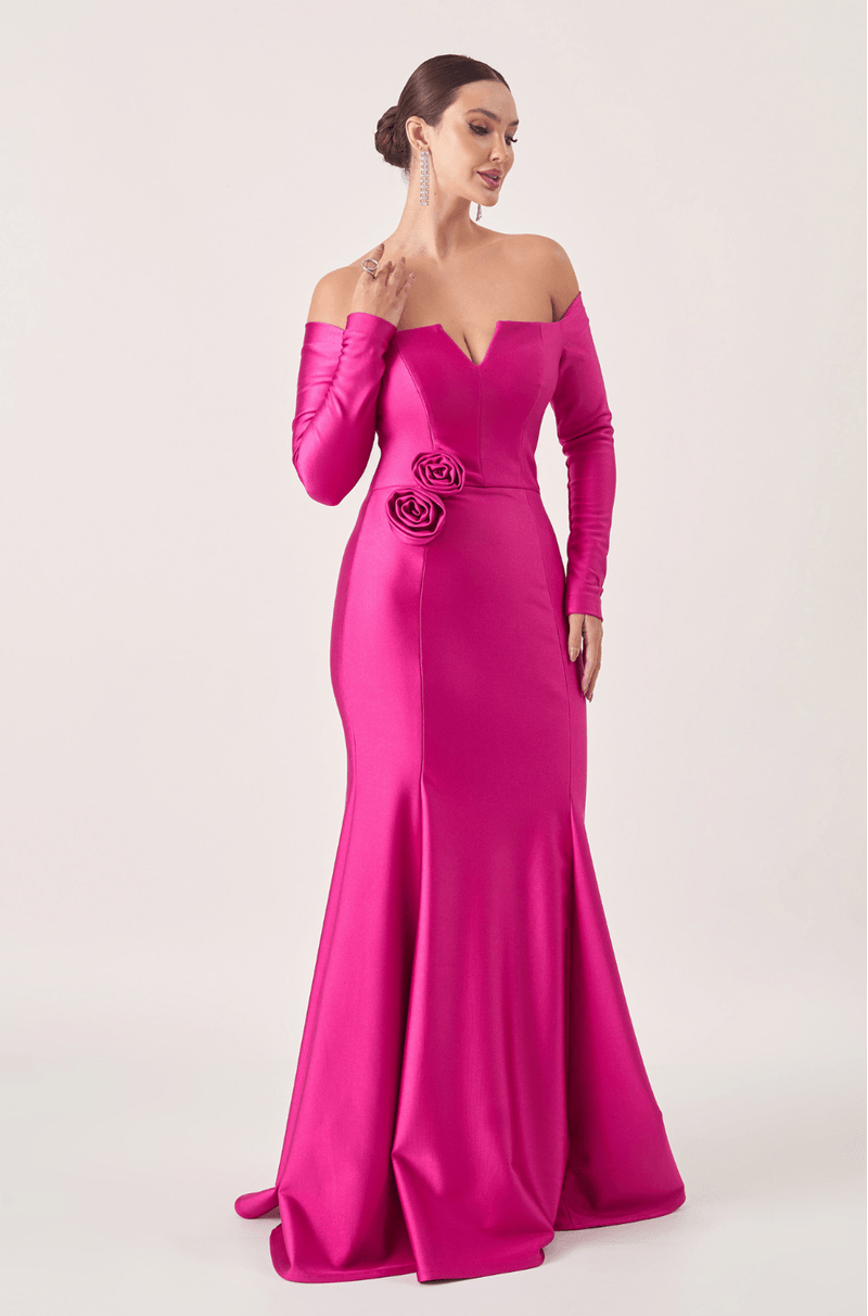 Conforto e elegância se unem neste vestido longo em malha, perfeito para quem busca sofisticação sem abrir mão da leveza. O decote ombro a ombro com abertura no busto valoriza o colo de forma delicada, enquanto o recorte com barbatana transpassada oferece sustentação e um caimento impecável. A saia sereia com nesgas garante movimento fluido, e as flores aplicadas na lateral acrescentam um toque feminino e sofisticado.