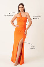 Um vestido que une conforto e estilo com muita versatilidade. Feito em malha de toque macio, ele traz um decote ombro único com alça larga que pode ser usada de duas formas: fechada ou como manga caída. O torcido no busto e os franzidos na cintura e quadril valorizam as curvas, enquanto a fenda frontal adiciona um toque sofisticado de sensualidade.